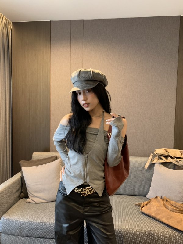 Oc46 本期命中款!假兩件彈力時髦超模tee 灰
