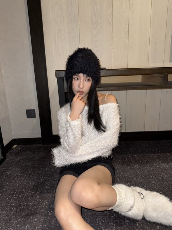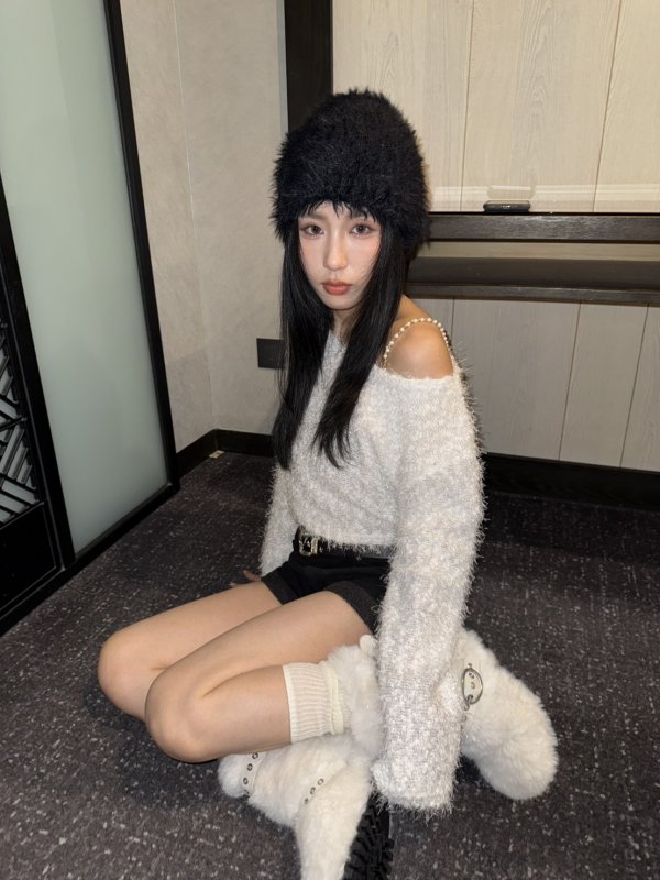T02 本期命中款!法式小香斜肩鏈條衫 白