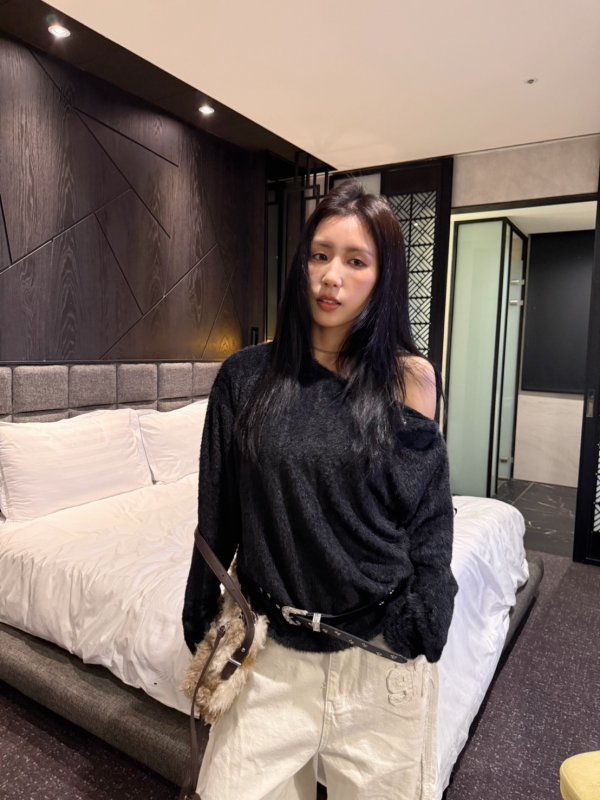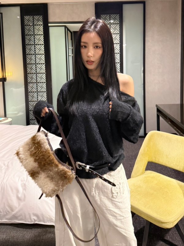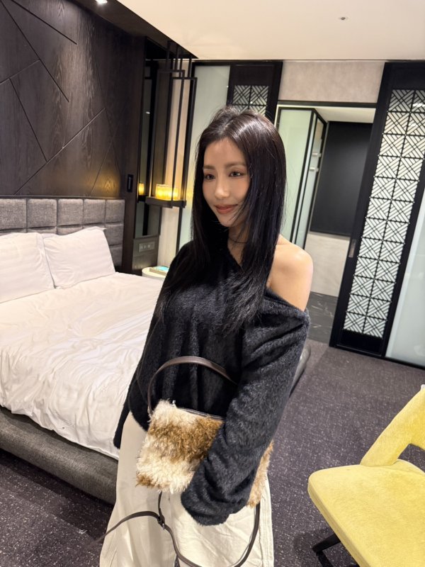 T11 本期命中款!冬日顏值水貂毛斜開釦衫 黑