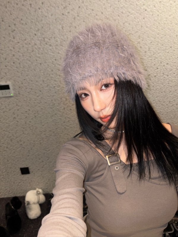 T14 本期命中款!小臉王長毛毛帽 灰/卡/黑