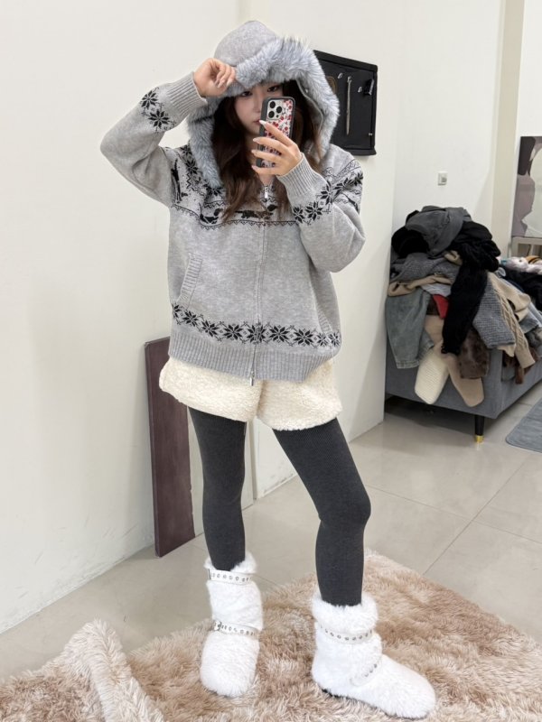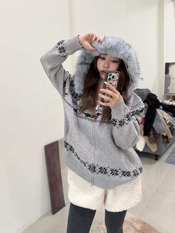 《現貨》T06 針織圖騰秋冬連帽外套 毛毛可拆