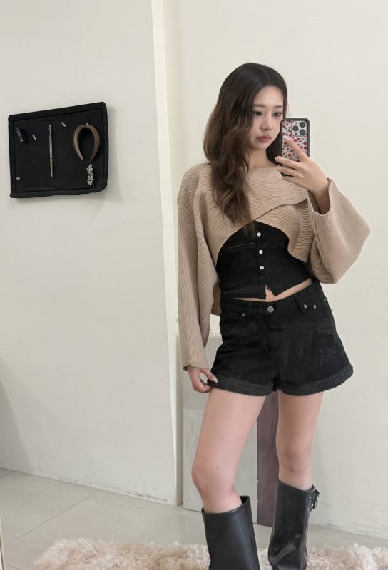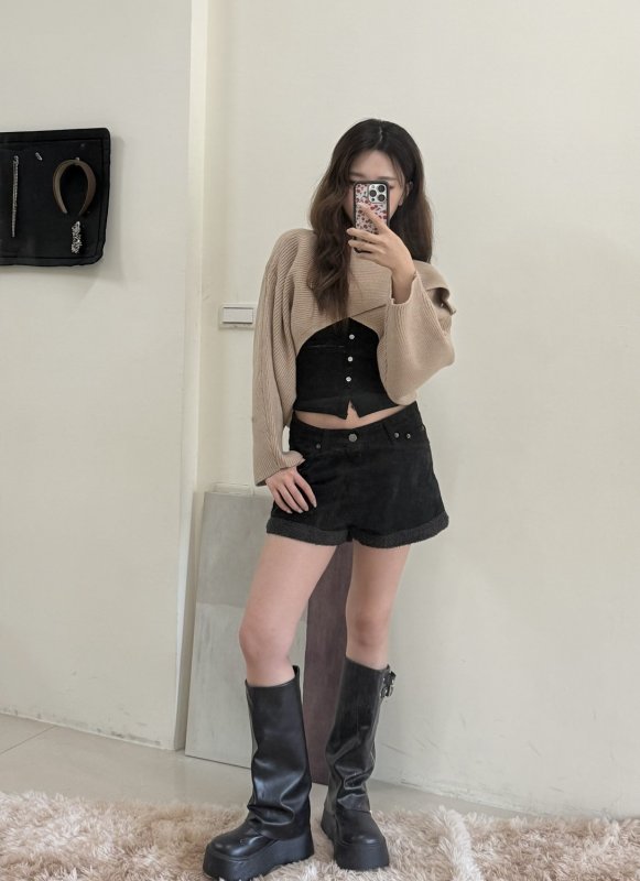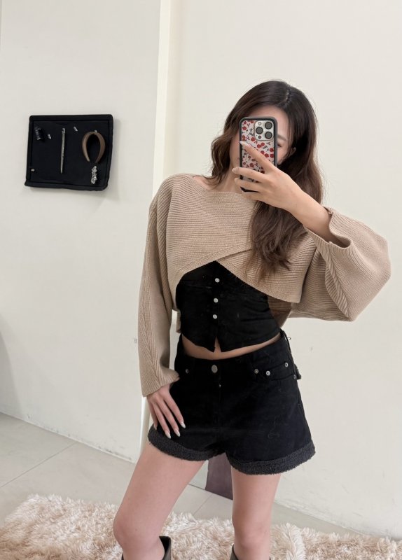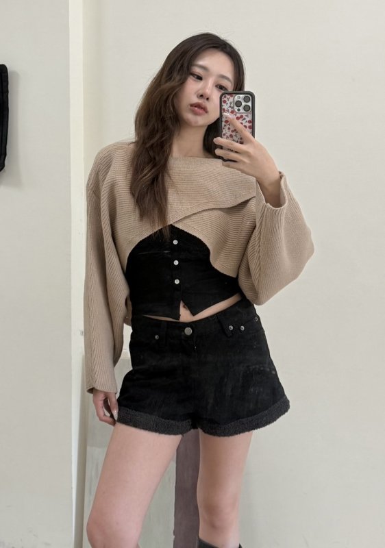 《現貨》T08 交叉針織疊穿衫 卡其