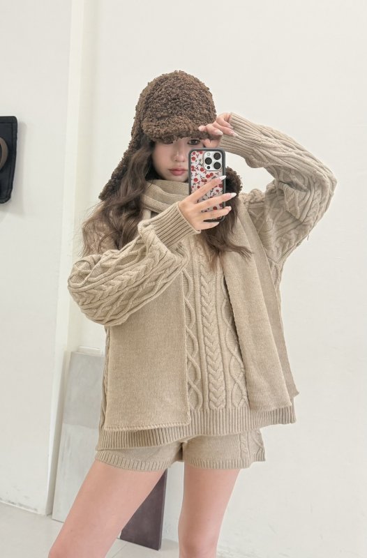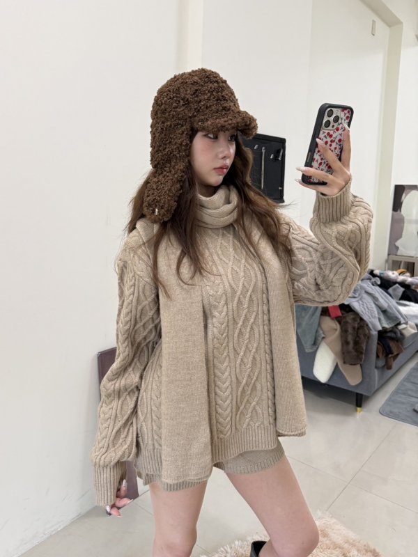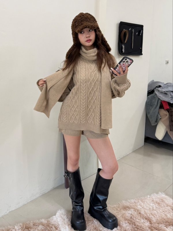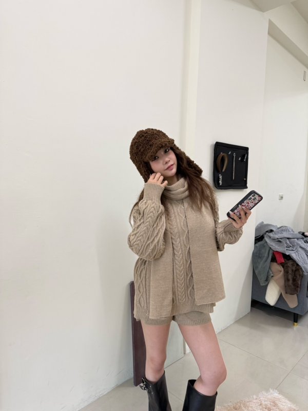 《現貨》T10 超值冬日戀人三件組麻花套裝 卡其