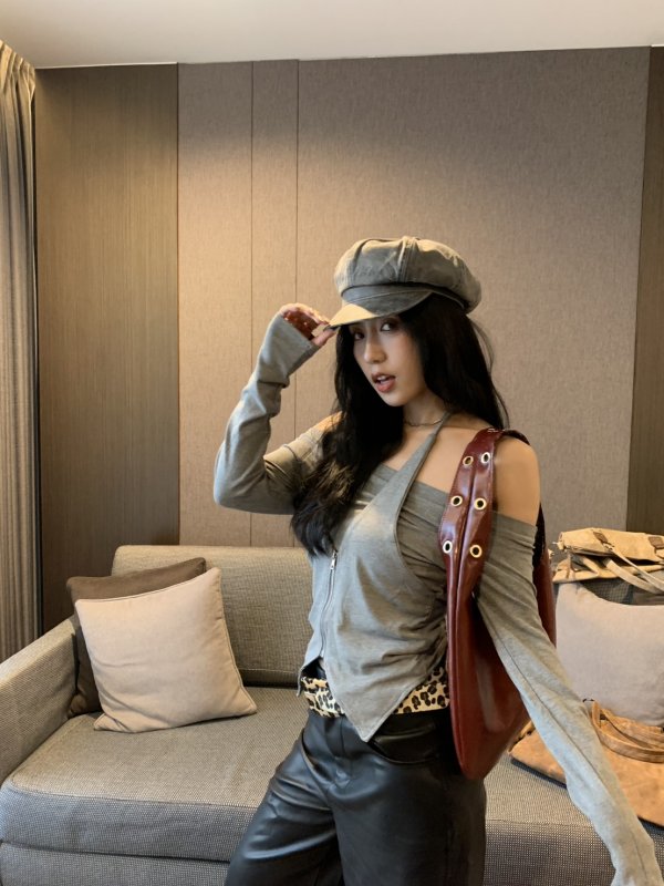Oc46 本期命中款!假兩件彈力時髦超模tee 灰