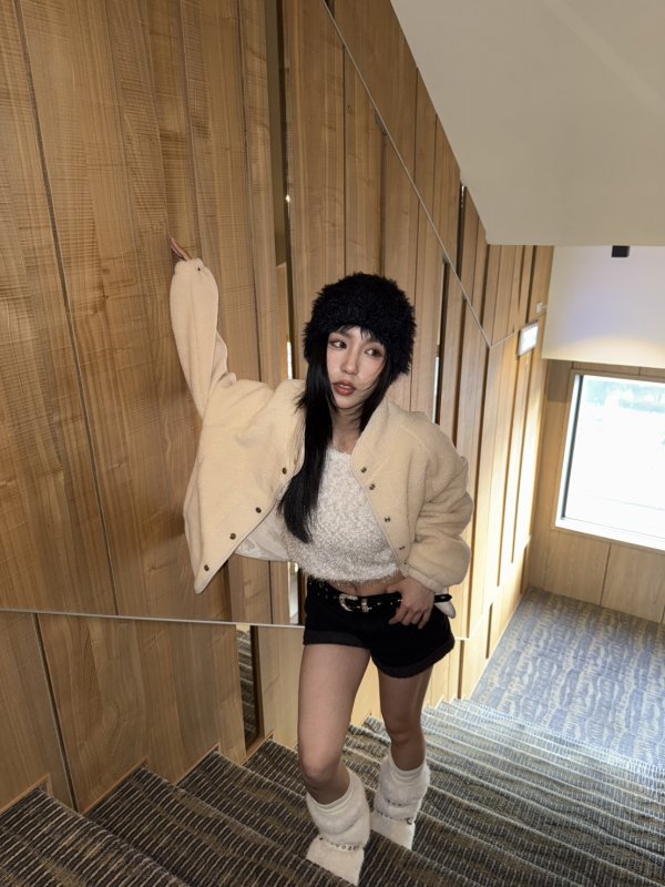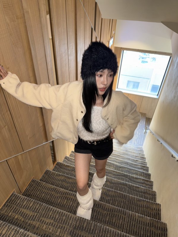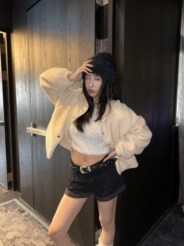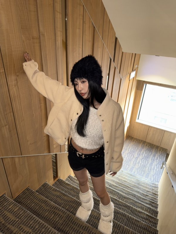 T22 本期命中款!酷妹水貂毛拉鏈外套 米白