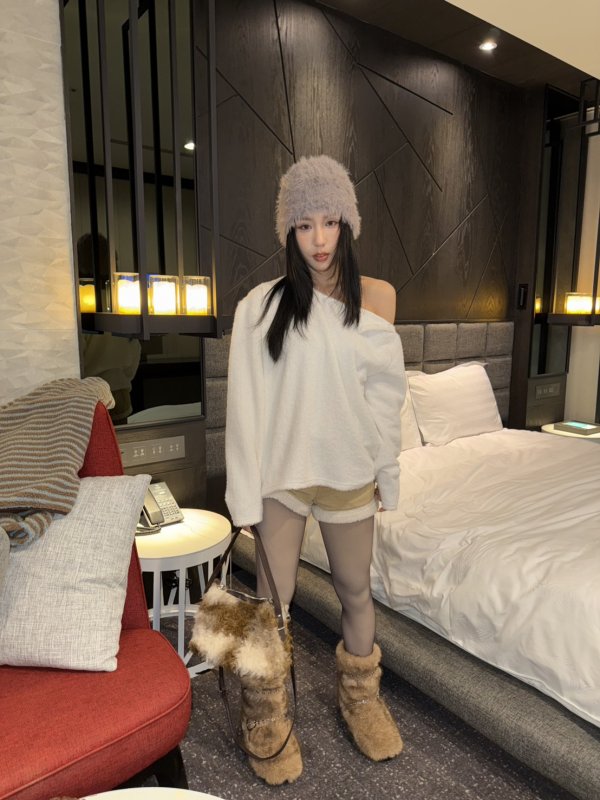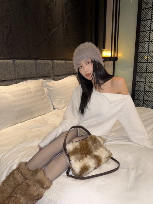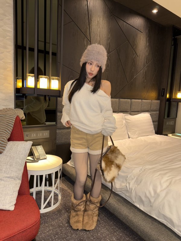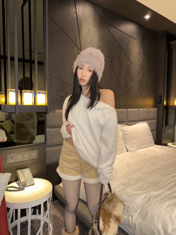 T11 本期命中款!冬日顏值水貂毛斜開釦衫 白