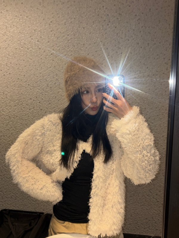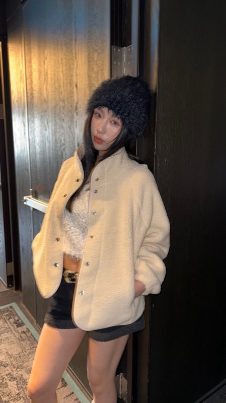 T22 本期命中款!酷妹水貂毛拉鏈外套 米白