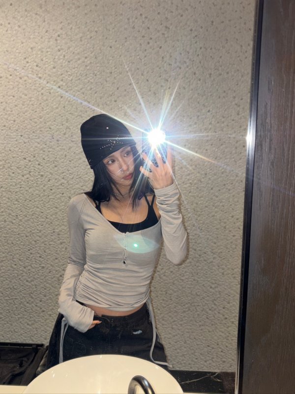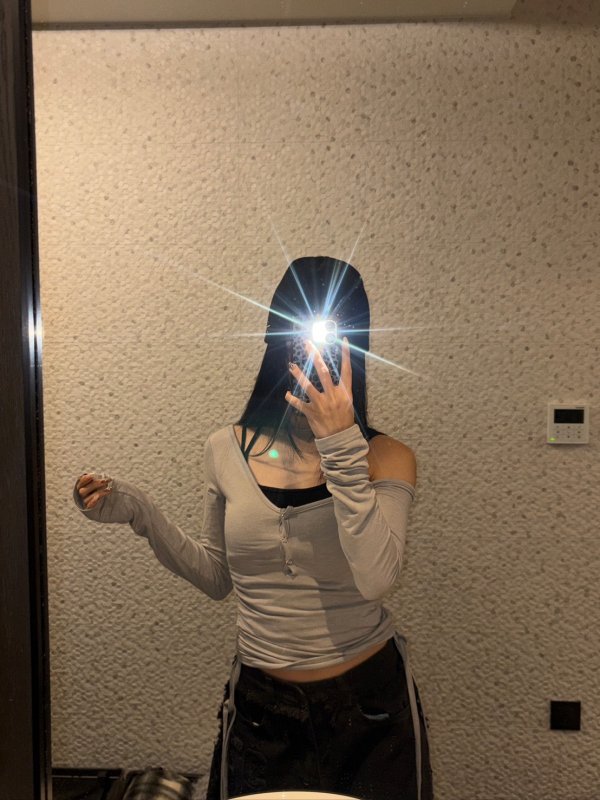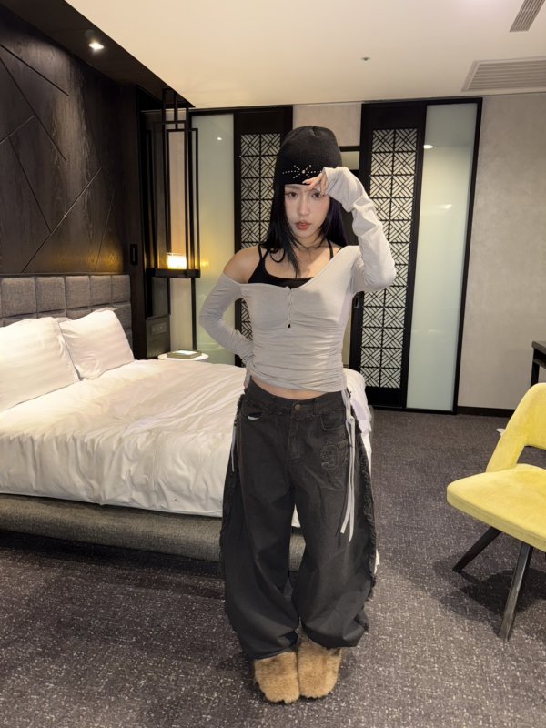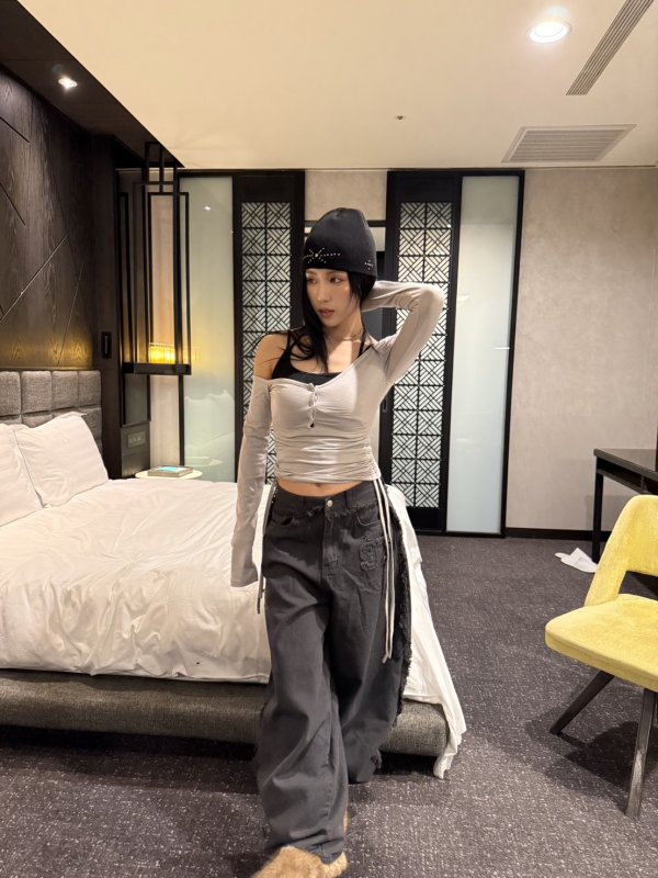 T19 本期命中款!辣妹多層次拼扣棉tee 灰