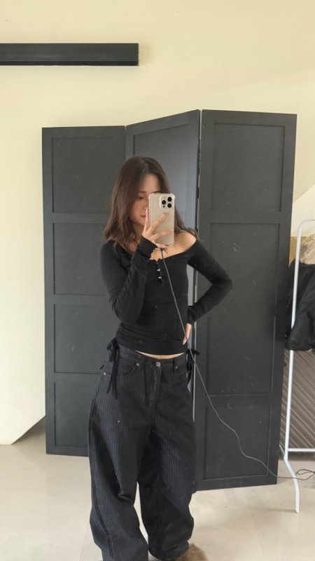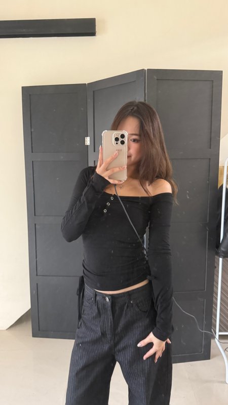 T19 本期命中款!辣妹多層次拼扣棉tee 黑