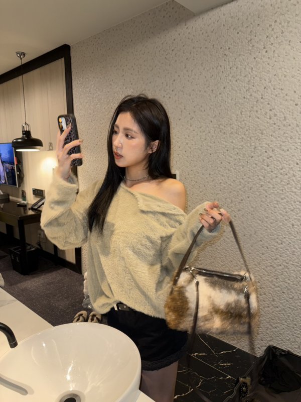 T22 本期命中款!酷妹水貂毛拉鏈外套 灰