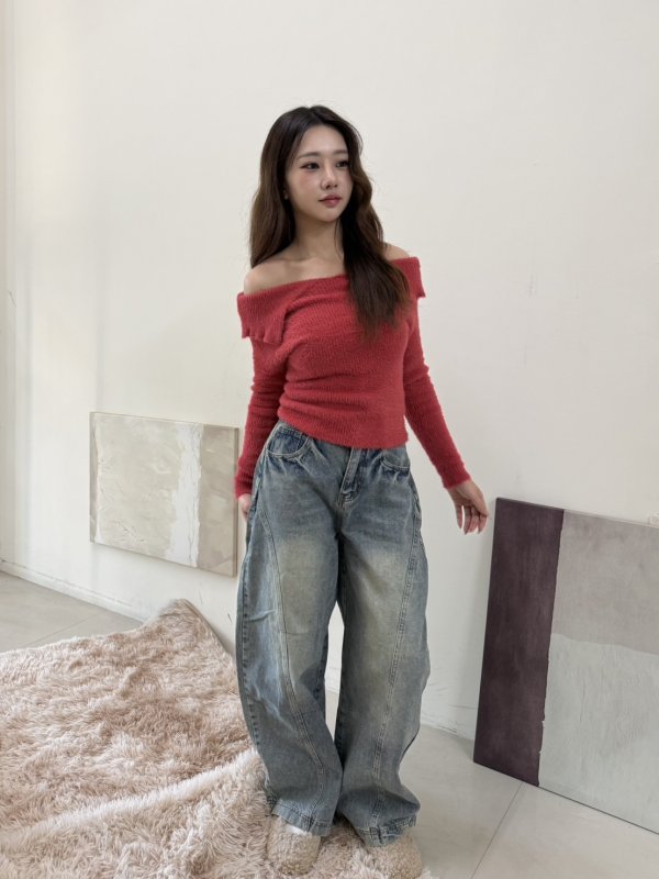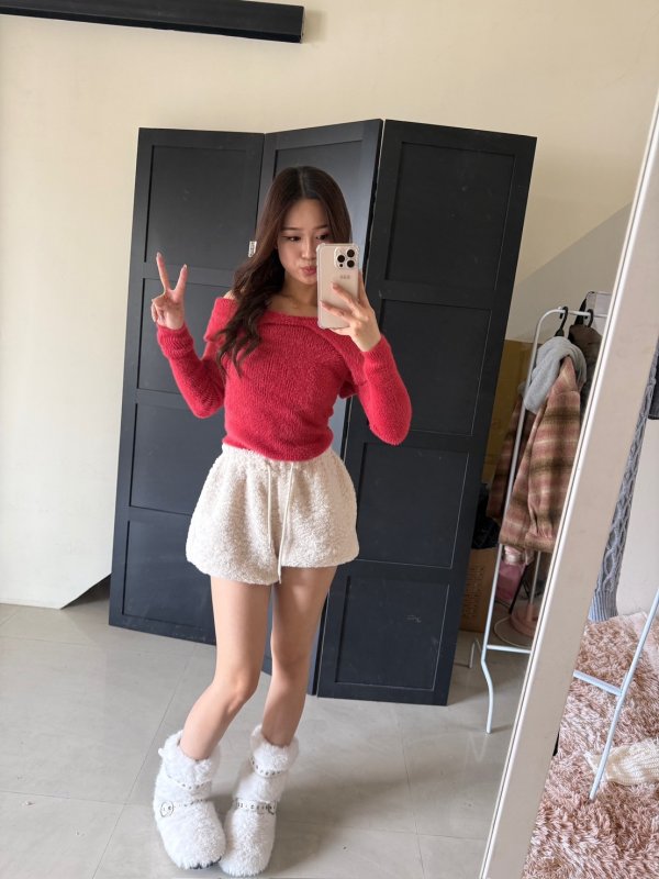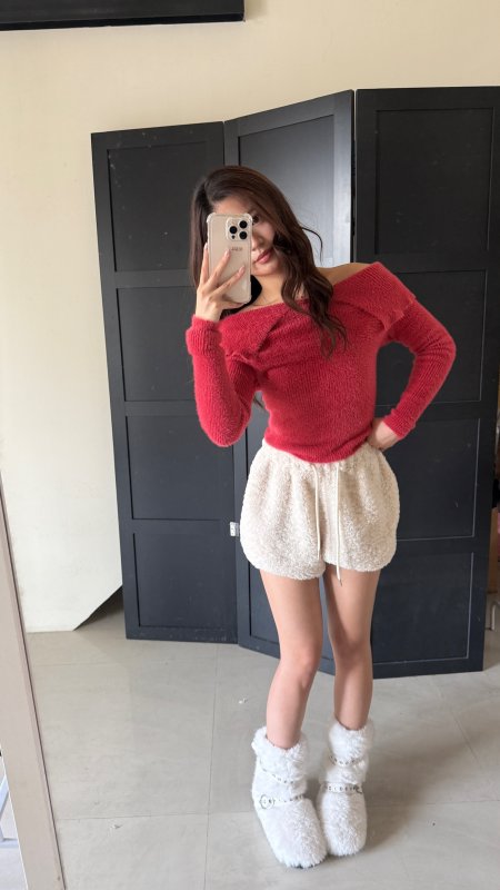 《現貨》T04水貂毛一字領彈力舒服tee 紅