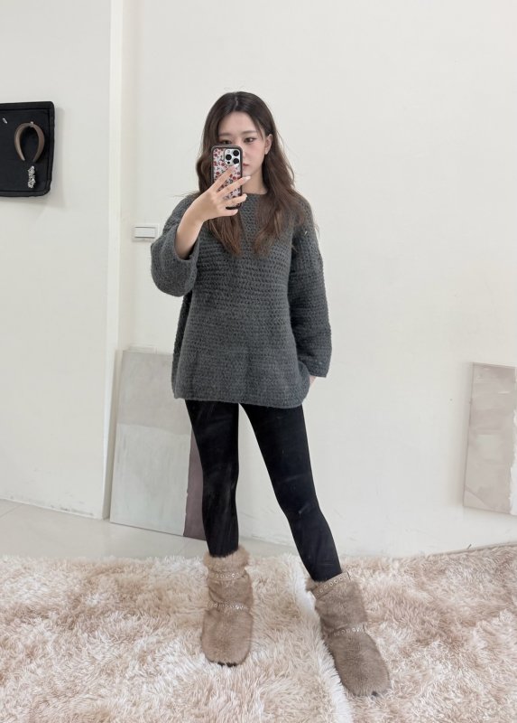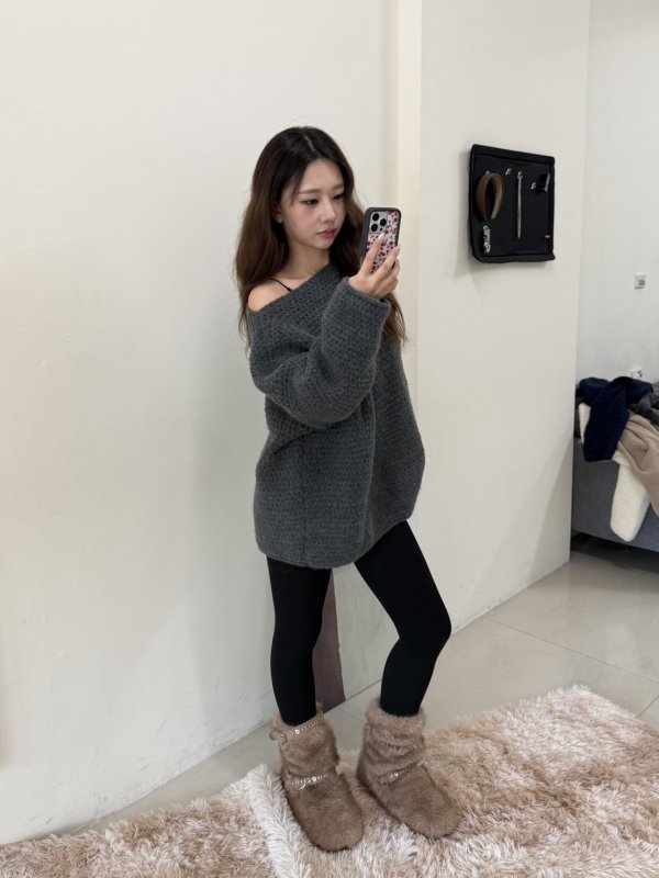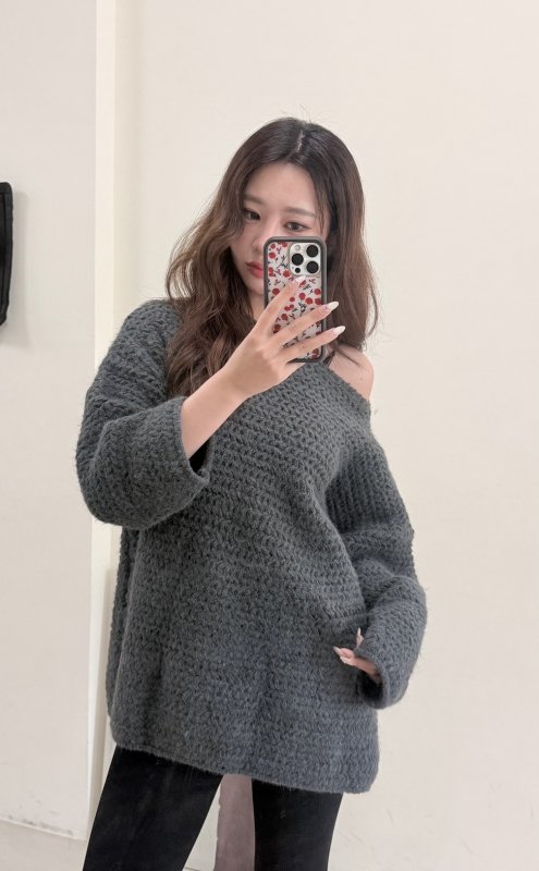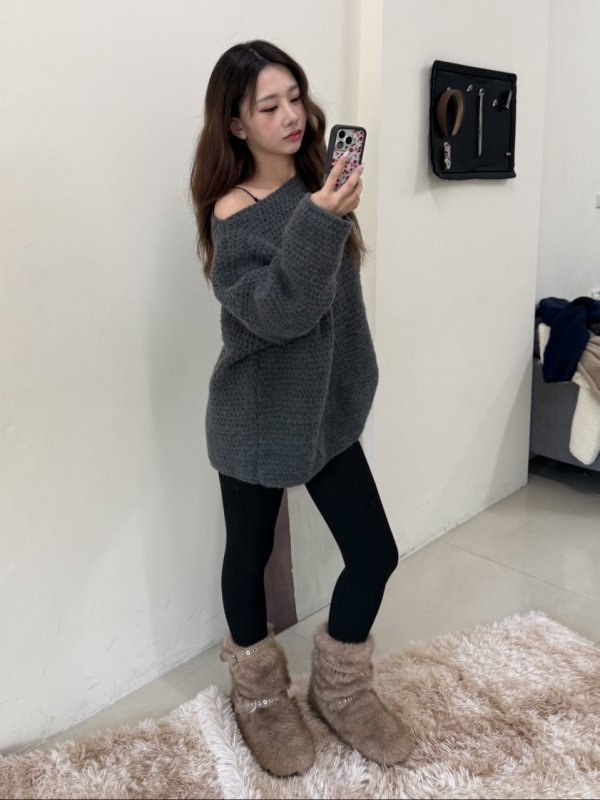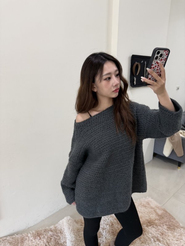 《現貨》T05 寬鬆可露肩厚實慵懶毛衣 深灰現貨倒數