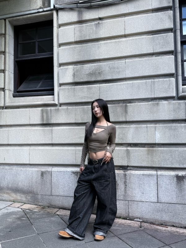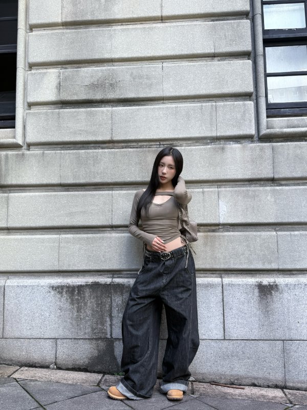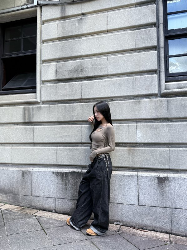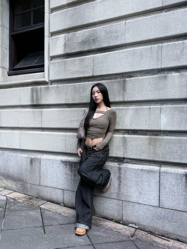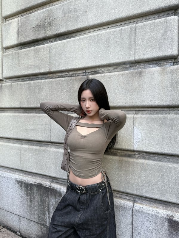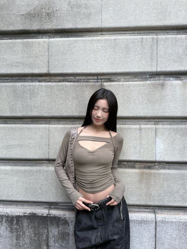 V03 夜色微醺辣妹綁帶搂空tee(帶胸墊) 軍綠