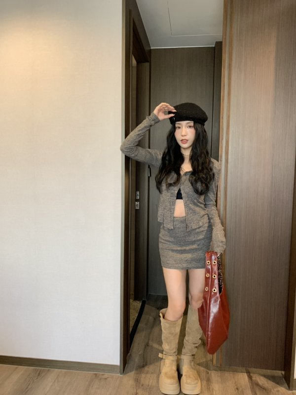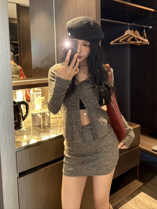 Oc44 本期命中款!夢中女主針織坑紋方領套裝set 灰