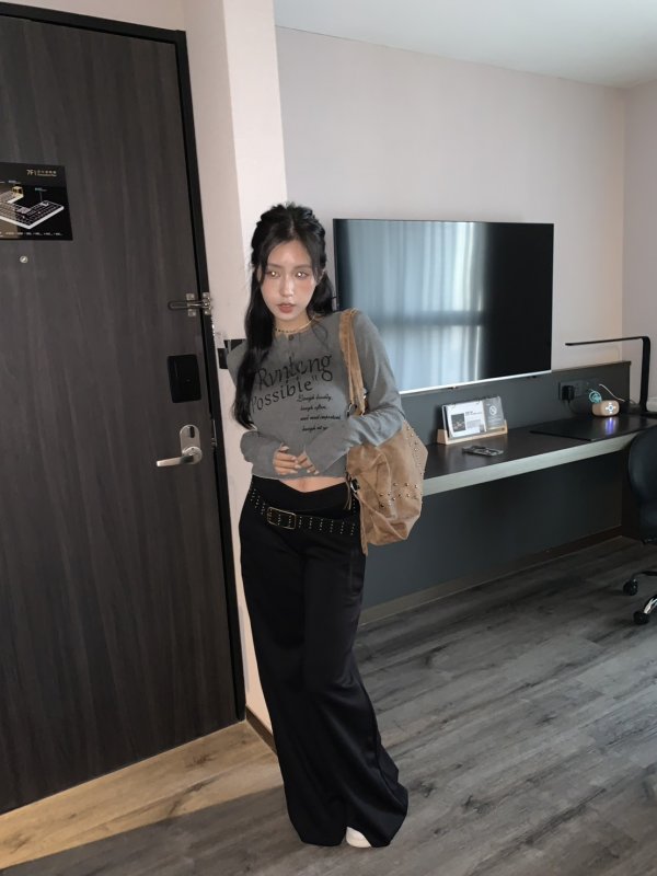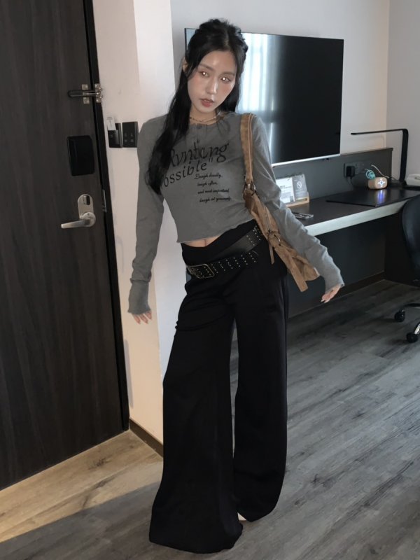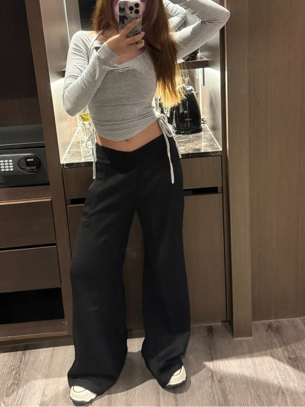 Oc45 穿著入睡!高腰V字大長腿軟糯微喇叭時髦棉褲 黑