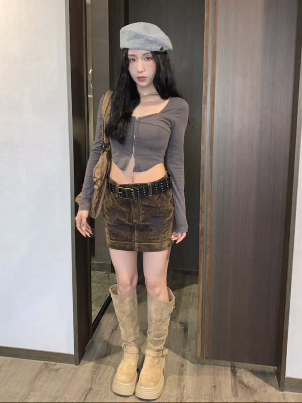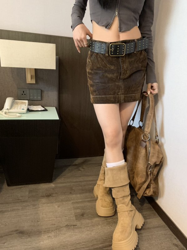 Oc52 本期命中款!踩影麂皮絨布秋冬摯愛短裙+贈送款皮帶