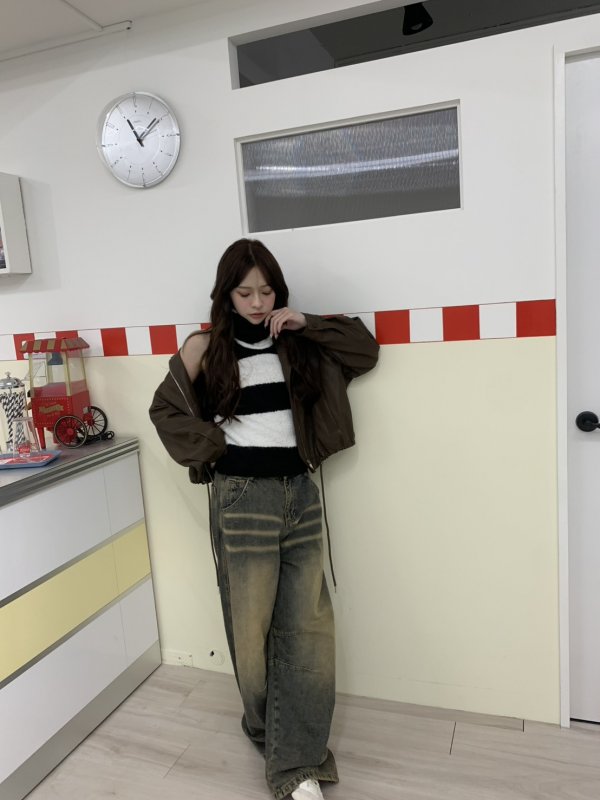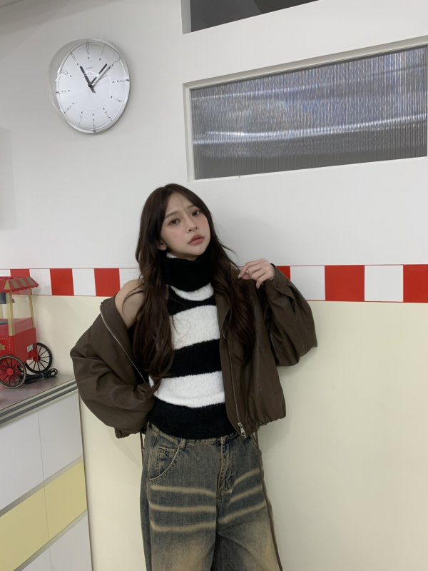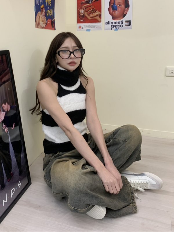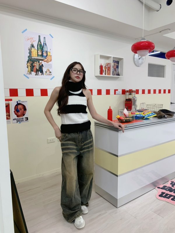 V05 本期命中款!舒服條紋高領不勒毛衣背心 白