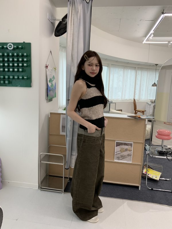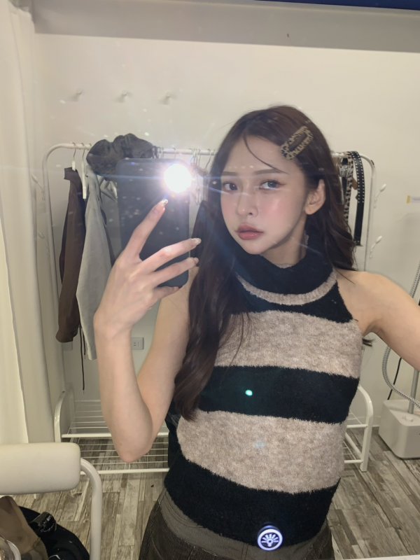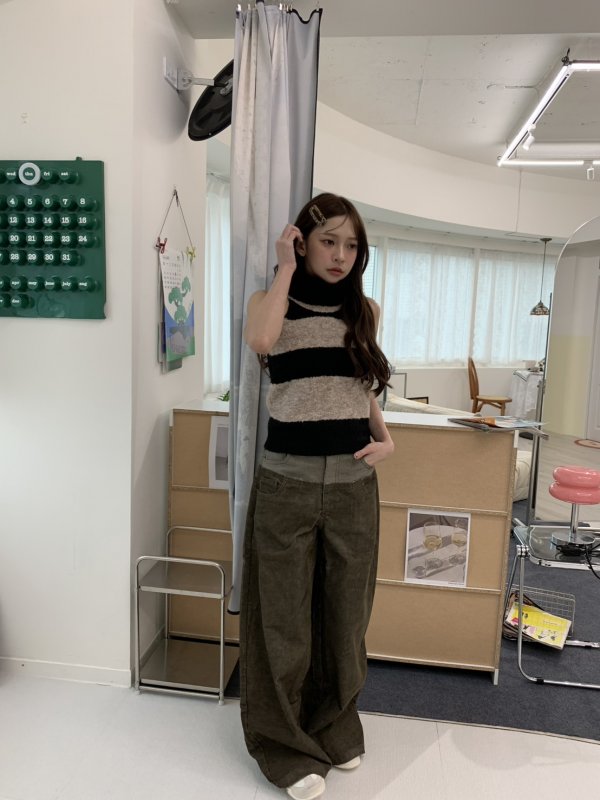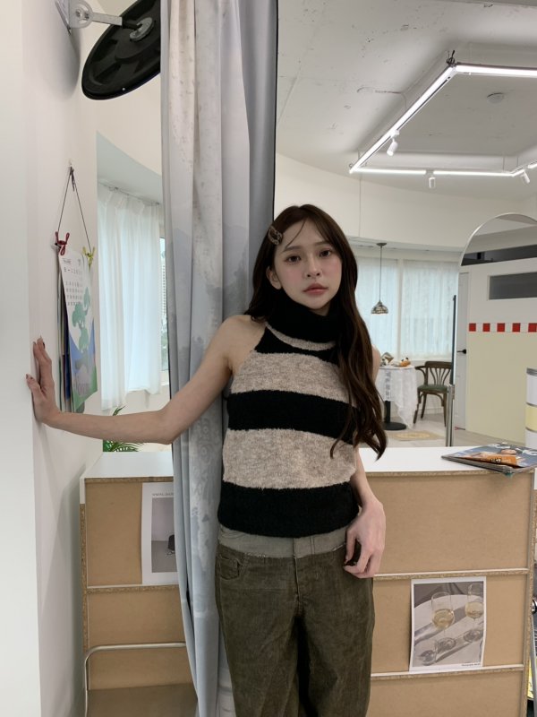 V05 本期命中款!舒服條紋高領不勒毛衣背心 卡其