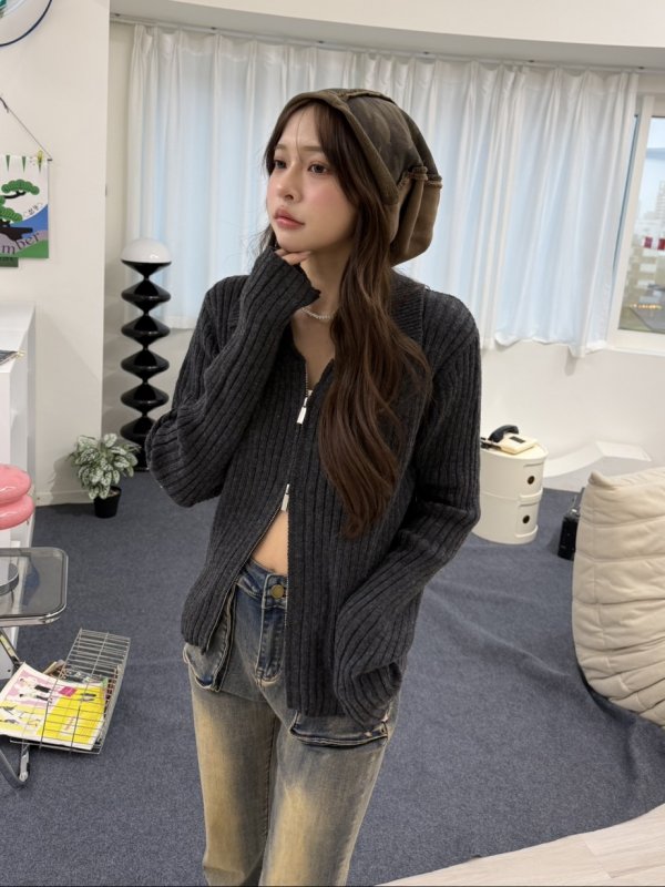 V09 本期命中款!冬天摯愛雙拉鍊針織坑紋毛衣 深灰