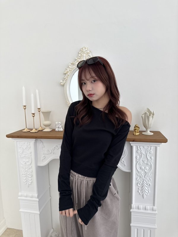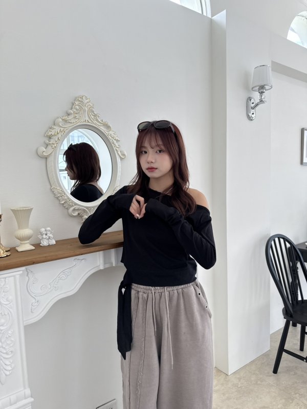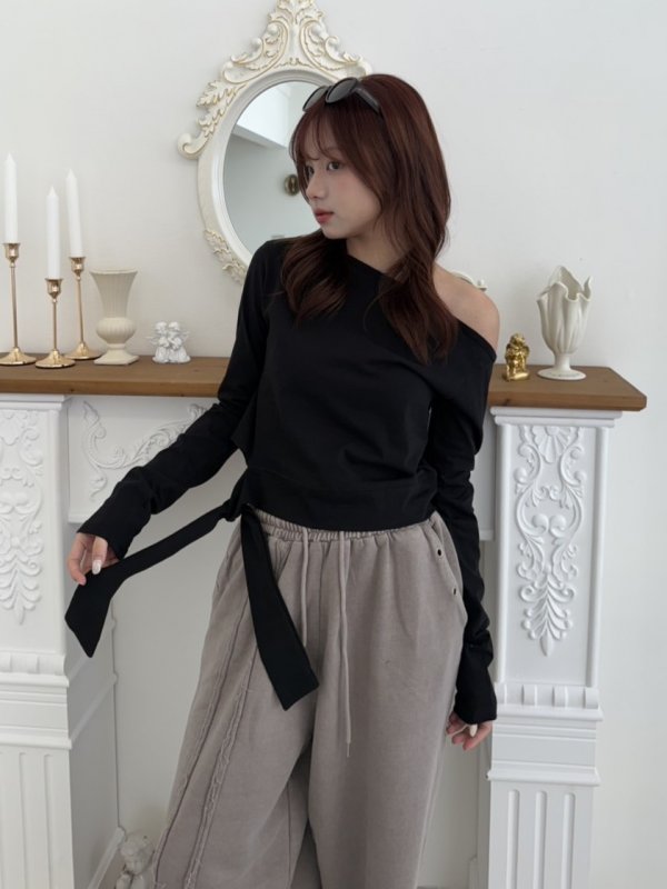 N05 City mood 慵懶斜肩綁帶tee 黑