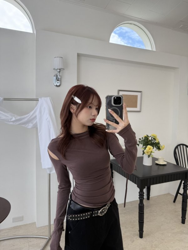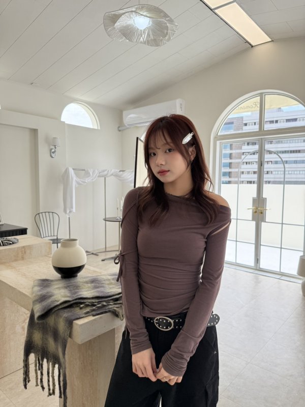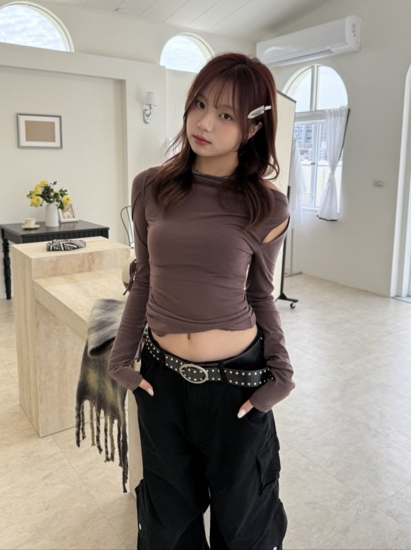 N06 四季歐膩彈力隨性綁帶棉tee 咖