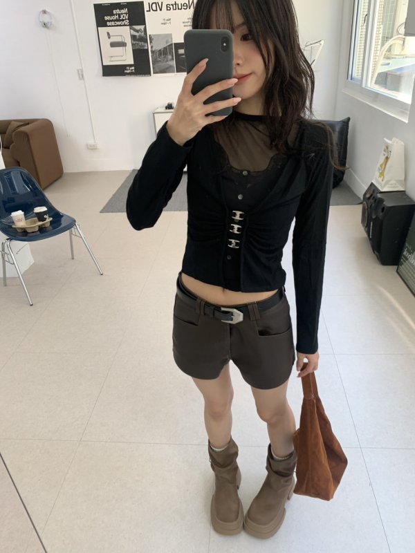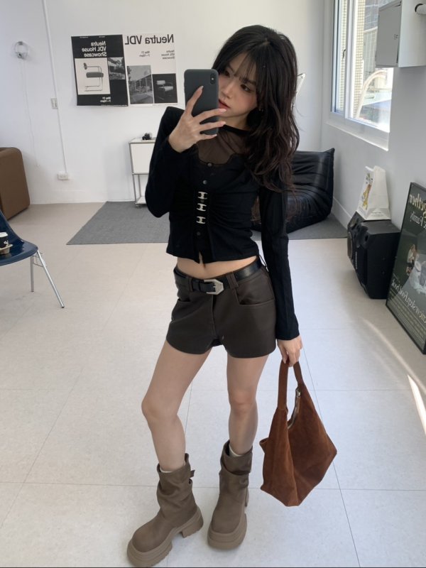 N40 本期命中款!霧夜時髦皮革優版型皮短褲(贈皮帶)咖