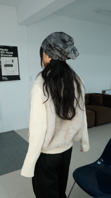 N49 Tokyo鑲鑽波點鬆緊堆堆帽 卡其/灰