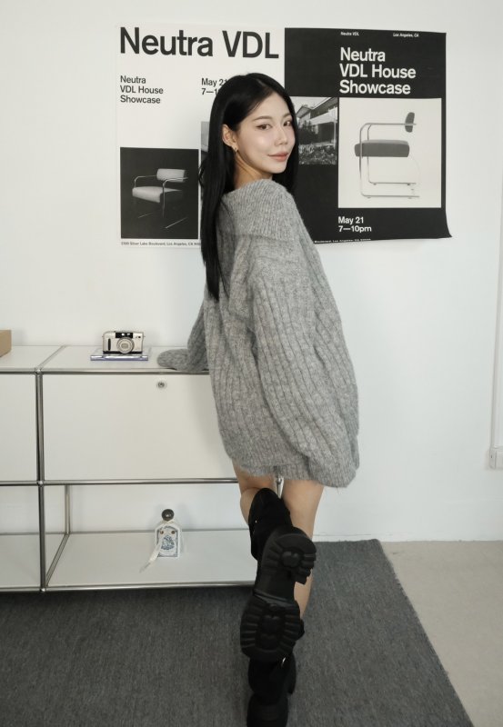 N52 本期命中款!柔霧絨雲polo領寬鬆針織set 灰
