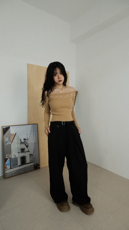 N55 本期命中款!富家高訂一字領珍珠tee 卡其