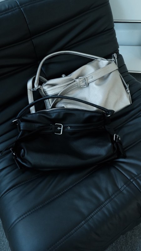 N59 冷雅荔枝紋肩背皮革包)贈斜背帶 黑/銀