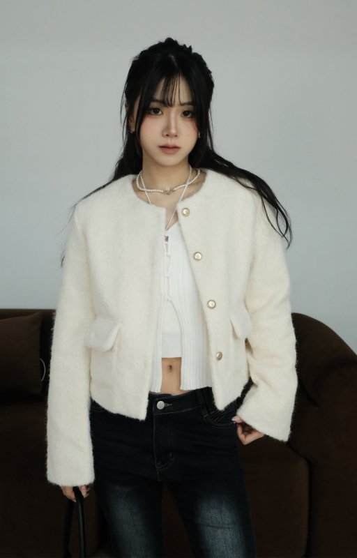 N67 本期命中款!小香微辣高版霧面釦外套(XS-XL皆可穿)白