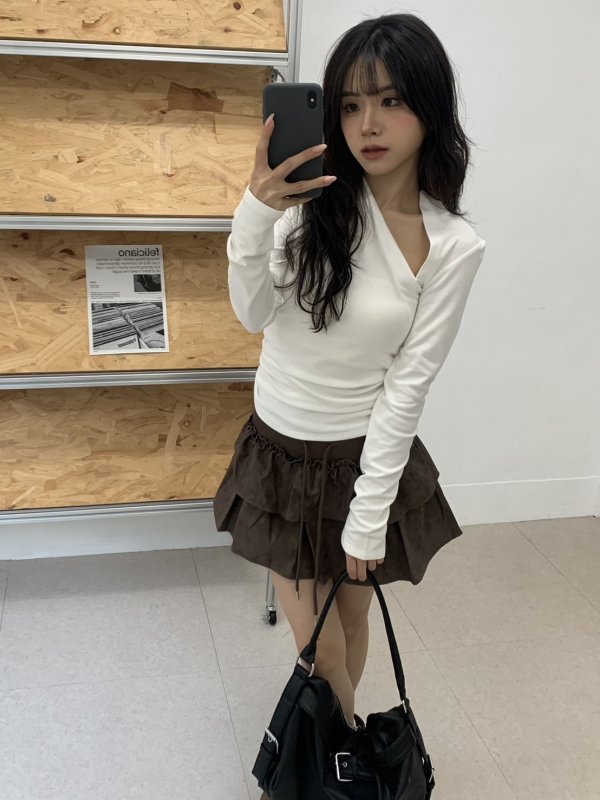 N70 渲染霧面皮革鬆緊蛋糕裙 咖