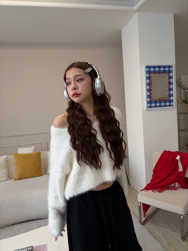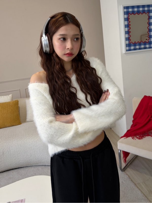 O21 本期命中款!神隱少女V領水貂毛衣 白