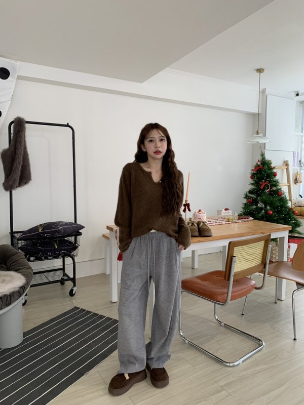 O23雙腰頭舒服微彎刀棉褲 灰