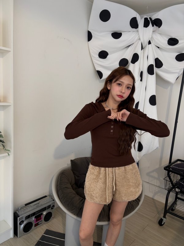 O28 本期命中款!迷人危險羊羔毛鬆緊超Q短褲 卡其