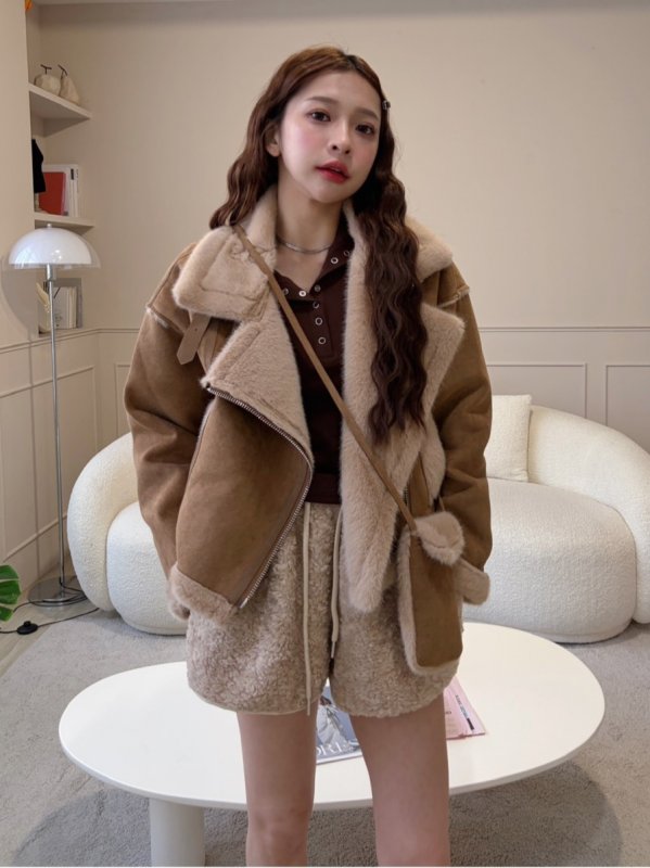 O30 本期命中款!年末幸福贈小包毛絨短版外套 卡其