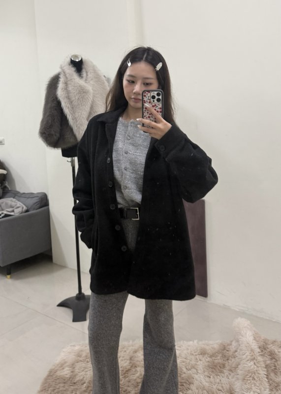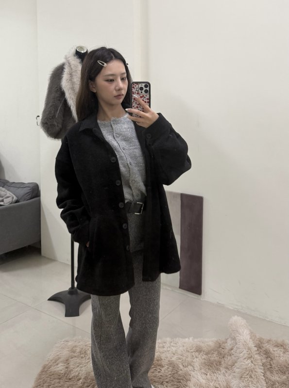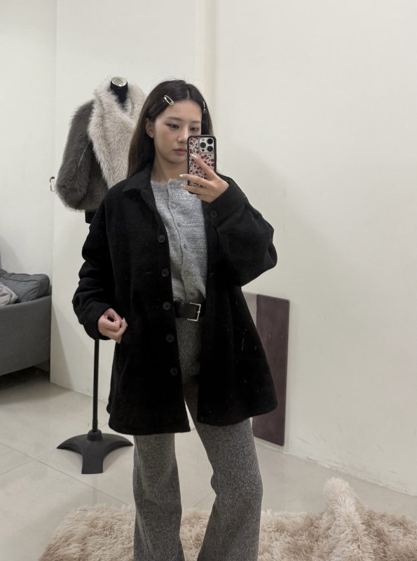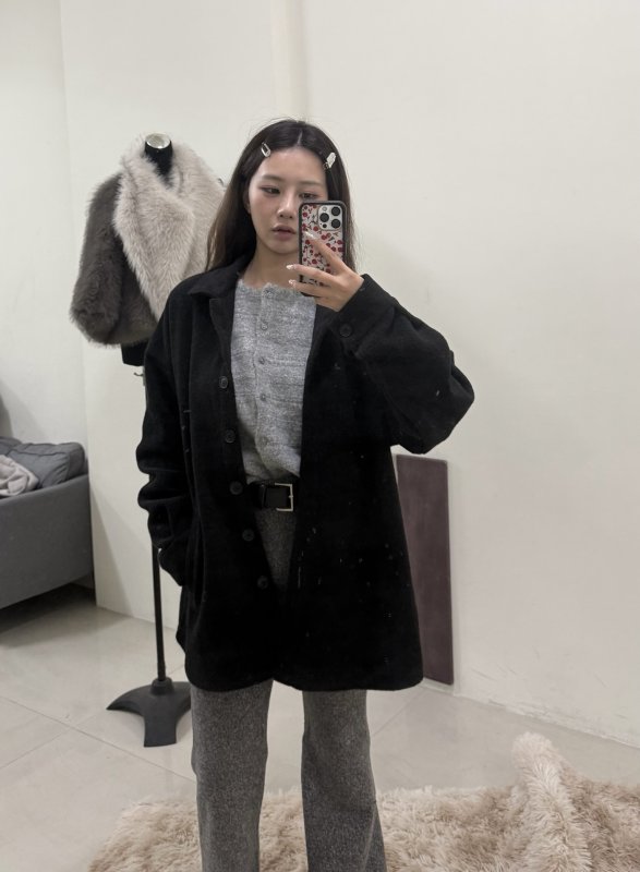O35 長版秋冬皆可穿薄開衫磨毛外套 黑