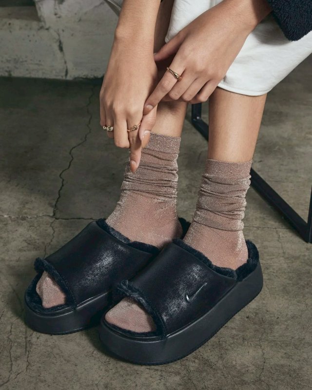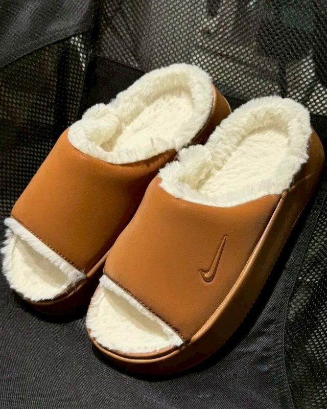 Nike Calm Elevation Fur 厚底毛毛拖 粉紅/焦糖/黑
