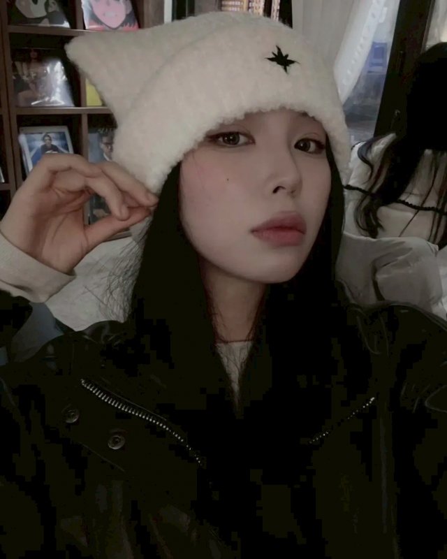 NOMBRE 黑色毛茸茸貓耳針織帽 黑/藍/白
