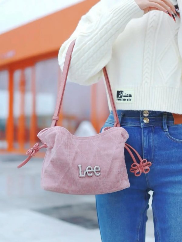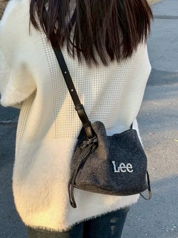 Lee 水洗丹寧菱格紋福袋包 抽繩水桶包 水洗單寧/水洗黑/乾燥粉