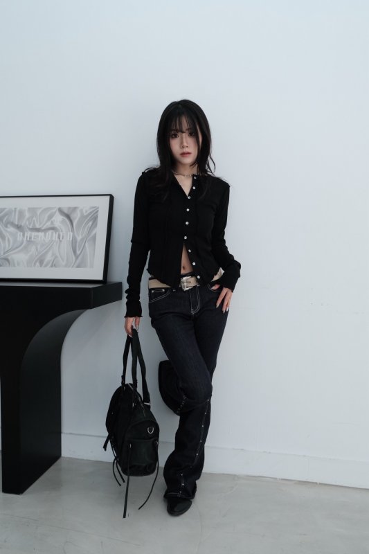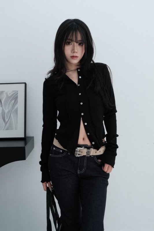 M06 本期命中款! 東京柔光熱銷款排扣日系薄長袖 黑