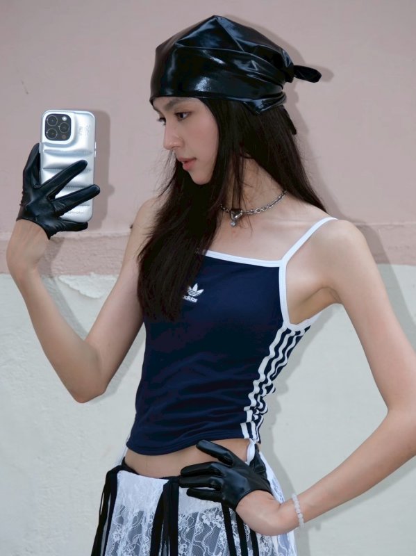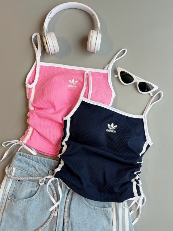 Adidas Originals 側抽繩吊帶背心 自帶胸墊 深藍/粉/灰
