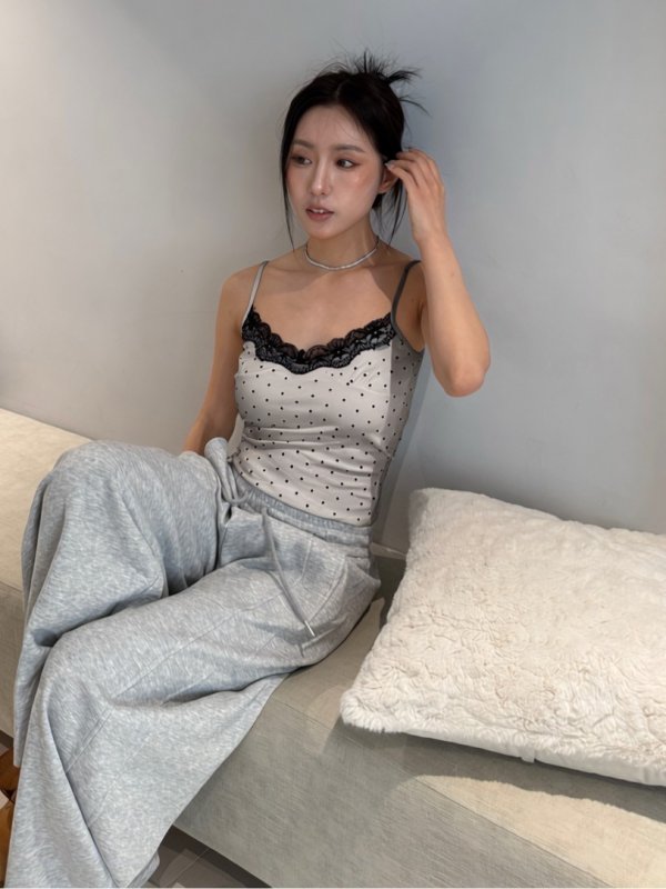 A75 本期命中款! 波點蕾絲氣墊胸墊彈力背心 灰