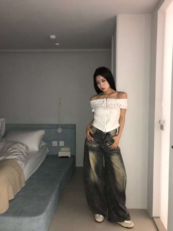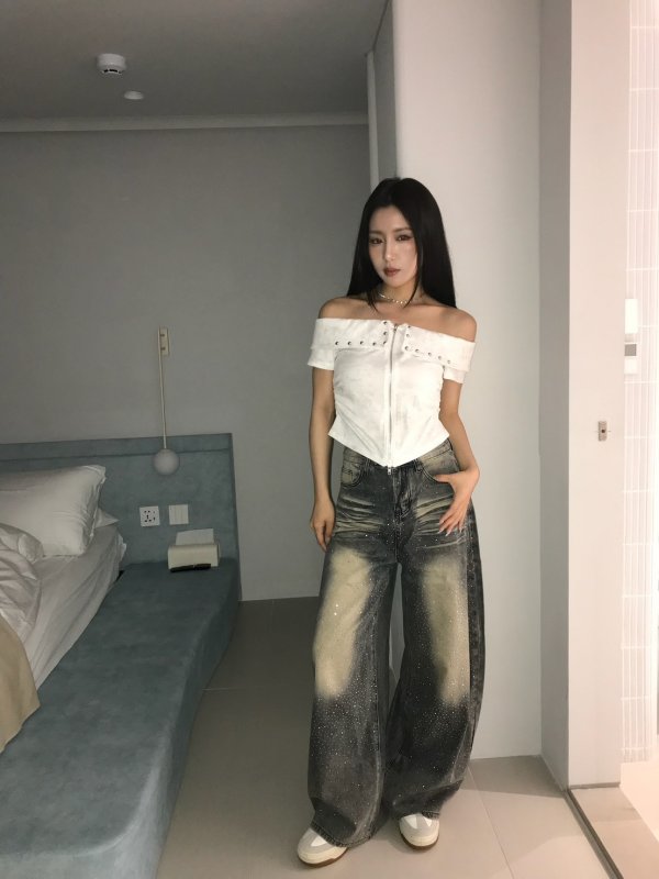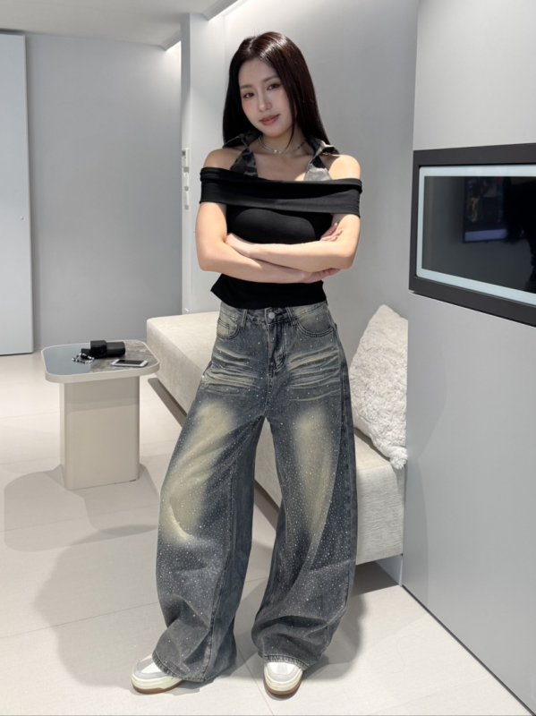 A79 本期命中款! 一眼命中鑽鑽復古刷色彎刀牛仔褲 深灰藍