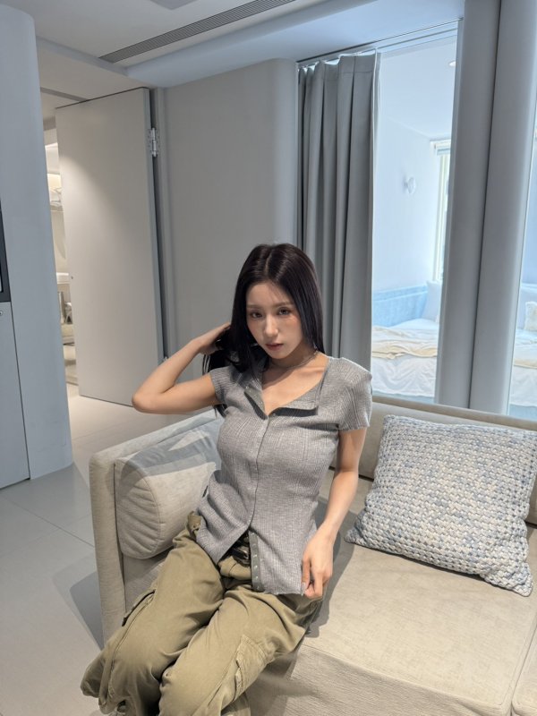 A80 本期命中款! 夏日透視超彈力坑紋薄T 灰