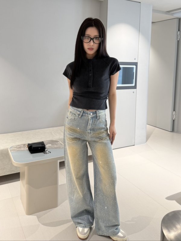 A88 夕陽腮紅鑽直筒牛仔褲