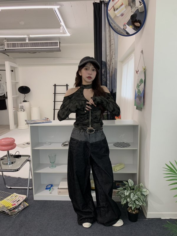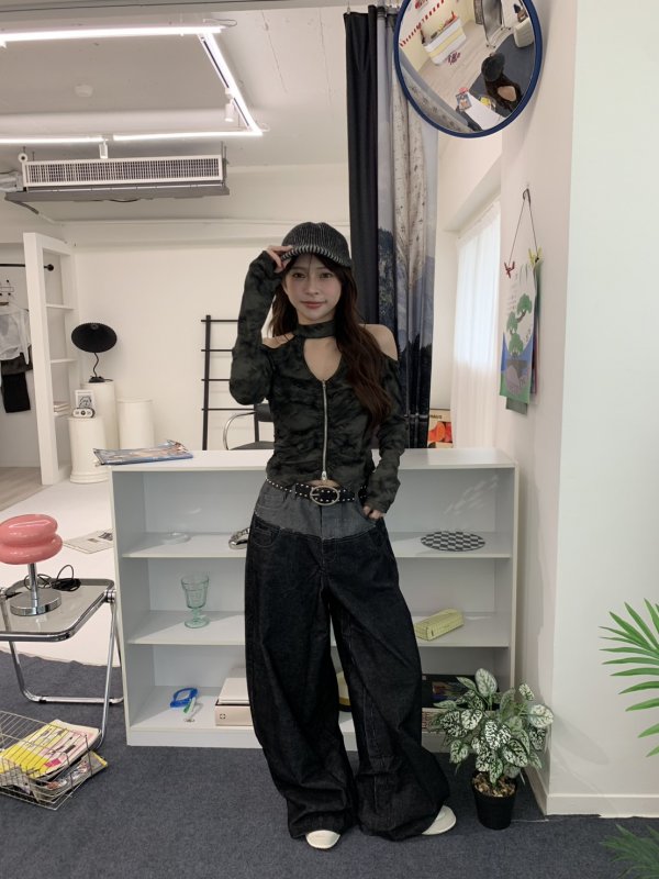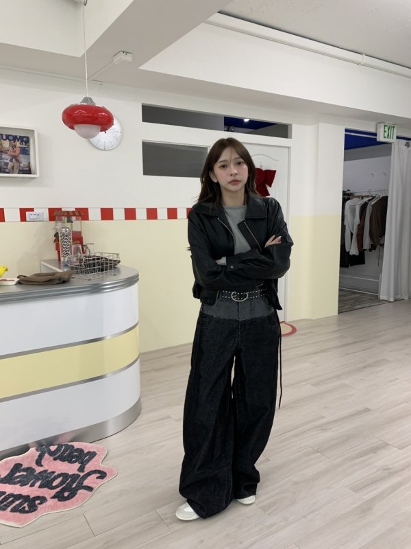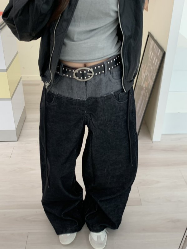 V02 本期命中款!貓鬚水洗拼接車邊異材質燈芯絨寬褲 黑