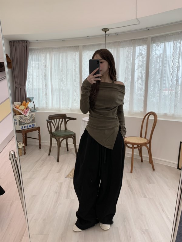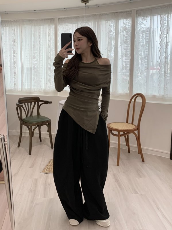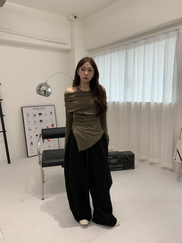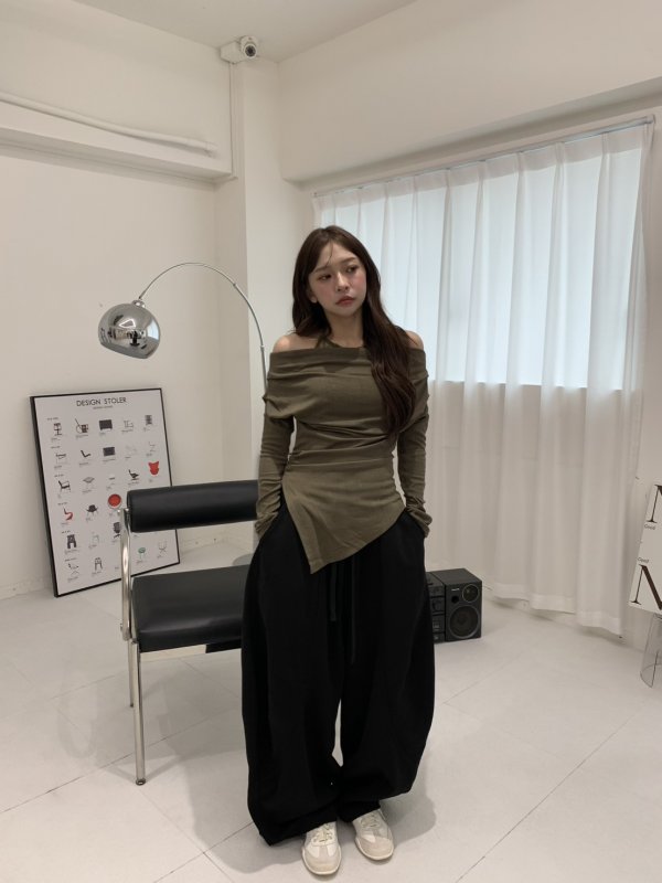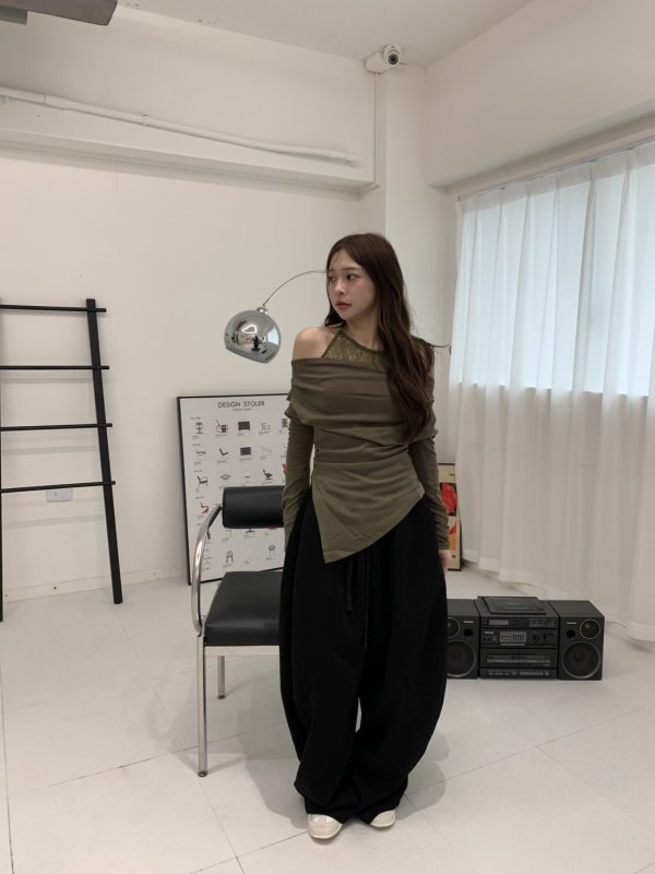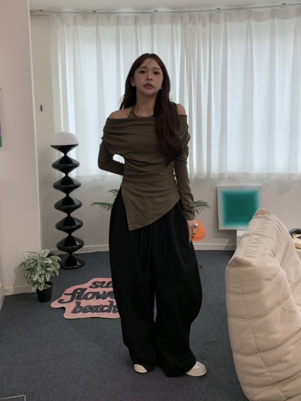V06 氣球闊腿重膀設計鬆緊棉褲 黑