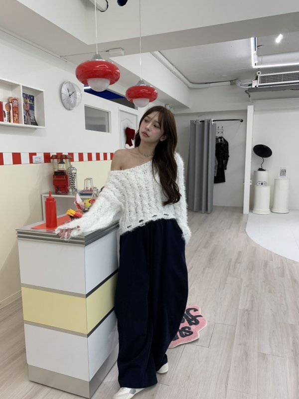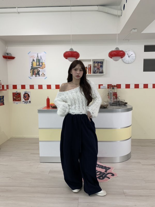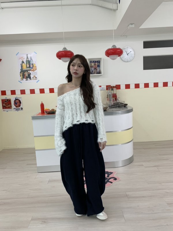 V06 氣球闊腿重膀設計鬆緊棉褲 藏青