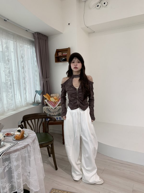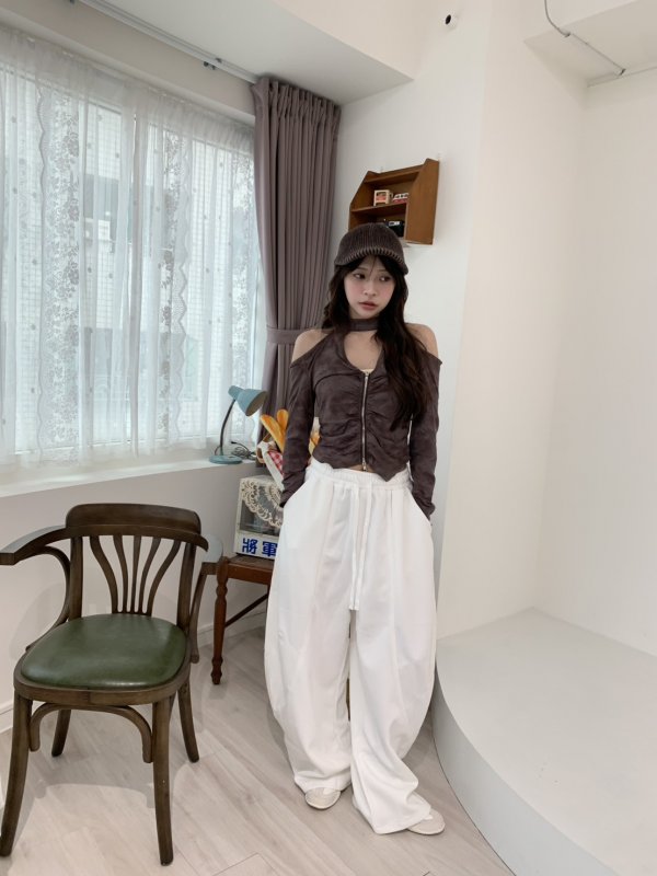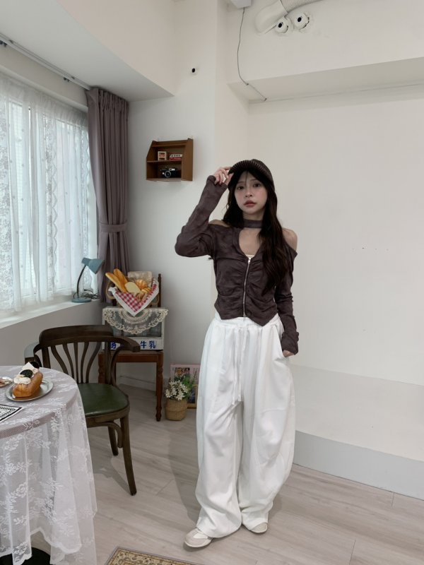 V07 暈染挖肩設計雙拉鍊棉tee 咖